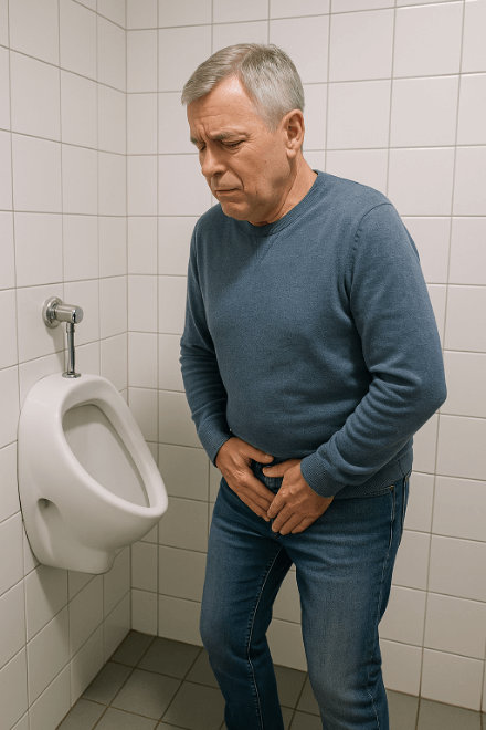 Jakmile se prostata zvětší, začne tlačit na močovou trubici a způsobuje problémy s močením. Muži si nejčastěji všimnou slabšího proudu moči, přerušovaného močení, pocitu nedostatečného vyprázdnění močového měchýře nebo častějšího nutkání na toaletu, zejména v noci.